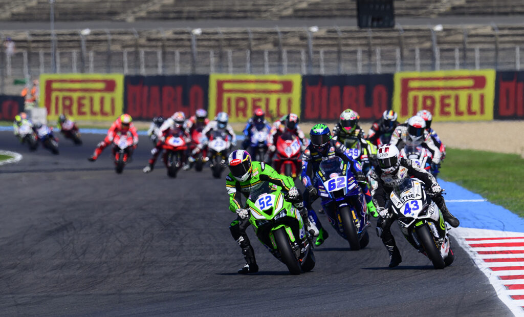 A temperatura ambiente de domingo tinha subido em comparação com o primeiro dia de corrida no circuito de Magny Cours, de 4,411 km de extensão. Com uma configuração de corrida na sua Kawasaki Ninja ZX-6R 636 que lhe permitia competir por uma posição no pódio durante toda a corrida, Alcoba aproveitou ao máximo a sua oportunidade para conquistar o quarto lugar.