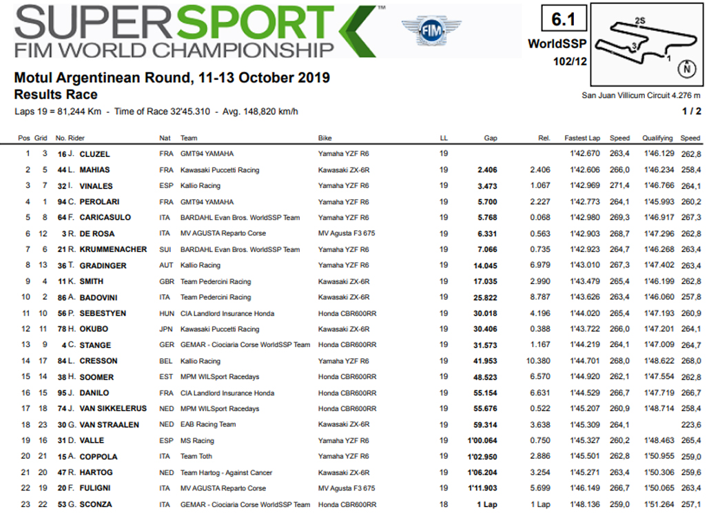 Quem não cometeu erros foi Jules Cluzel, que veio de trás para liderar quase logo a seguir, acabando por se afastar gradualmente ao longo das 19 voltas da corrida, e deixando atrás de si uma corrida de cortar a respiração: