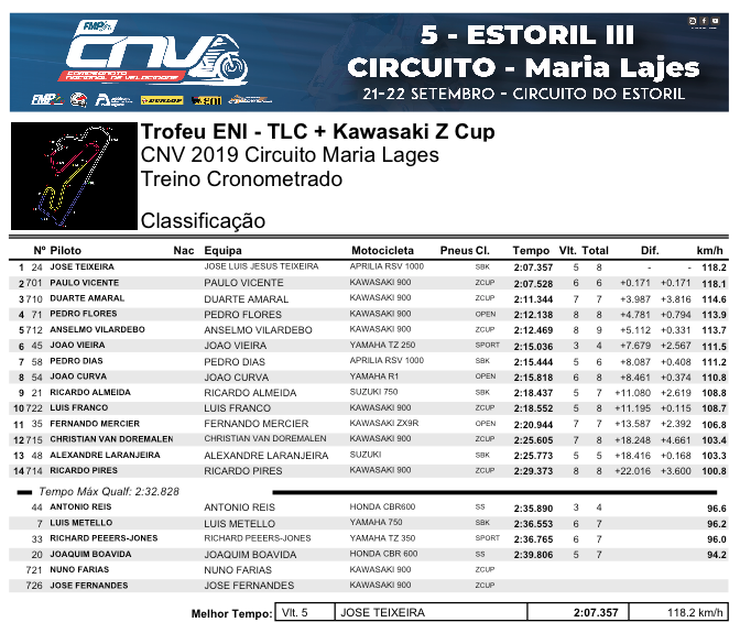 A Qualificação com chuva intensa, vê a pole à geral a ir para JLTeixeira das SBK do ENI/TLC, com Vicente logo atrás a assegurar a pole de entre as Zs mas com Amaral logo a seguir. Franco, menos à vontade nestas condições, qualifica-se em 10º da geral, batido pelo surpreendente Vilardebó que consegue um fantástico 5º lugar na grelha da partida integrada. Muito bom!!