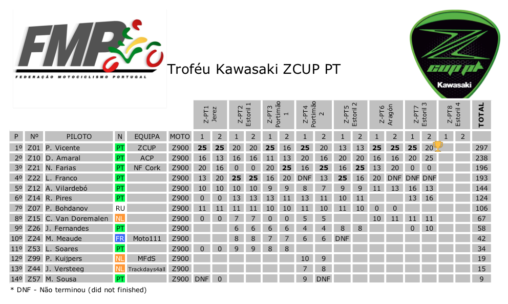 Com estes resultados, Vicente sagra-se vencedor por antecipação do Troféu ZCUP PT e Amaral ganha uma confortável vantagem para se sagrar vice-vencedor na próxima e última ronda. Totalmente em aberto, está ainda o 3º lugar entre Farias e Franco, pois este com a sua 3ª desistência consecutiva não conseguiu aproveitar a ausência de Farias.