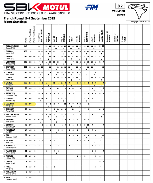 A última etapa francesa das SBK trouxe desafios a Vierge, mas foi um fim de semana positivo no geral para o piloto, que terminou bem entre os dez primeiros nas corridas de domingo e ficou satisfeito com o progresso alcançado.