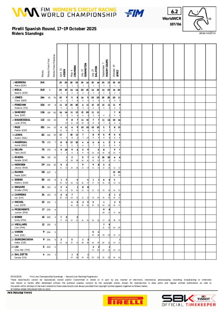 No evento, os 10 pontos ganhos a Herrera por Neila não foram suficientes para levar o título, e Maria Herrera é campeã mundial por 5 pontos. Ramos, com apenas 2 corridas, saltou imediatamente para 13º no Campeonato e esperamos vê-la a ganhar em 2026!