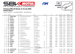 A última corrida do Campeonato do Mundo de Superbike, deu a vitória em Donington com estrondo, com Toprak a liderar o pódio para a sua 69ª vitória, à frente de Nicolo Bulega (Aruba.it Racing – Ducati) e do seu companheiro de equipa Alvaro Bautista, que conquistou o seu 188º pódio da carreira no WorldSBK. O piloto número 1 lidera agora o Campeonato de Pilotos com quatro pontos de vantagem sobre Bulega.
