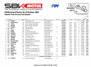 Na terceira posição ficou, mais uma vez, o piloto da Bimota, Alex Lowes (+0.570) com o seu colega de equipa Axel Bassani (+0.623) de seguida na quarta posição e por fim, a fechar o Top 5, Ricky Vickers (+0.647) que confirmou a sua saída da equipa Motocorsa Ducati durante o dia de hoje, revelando ser um piloto igualmente competitivo.